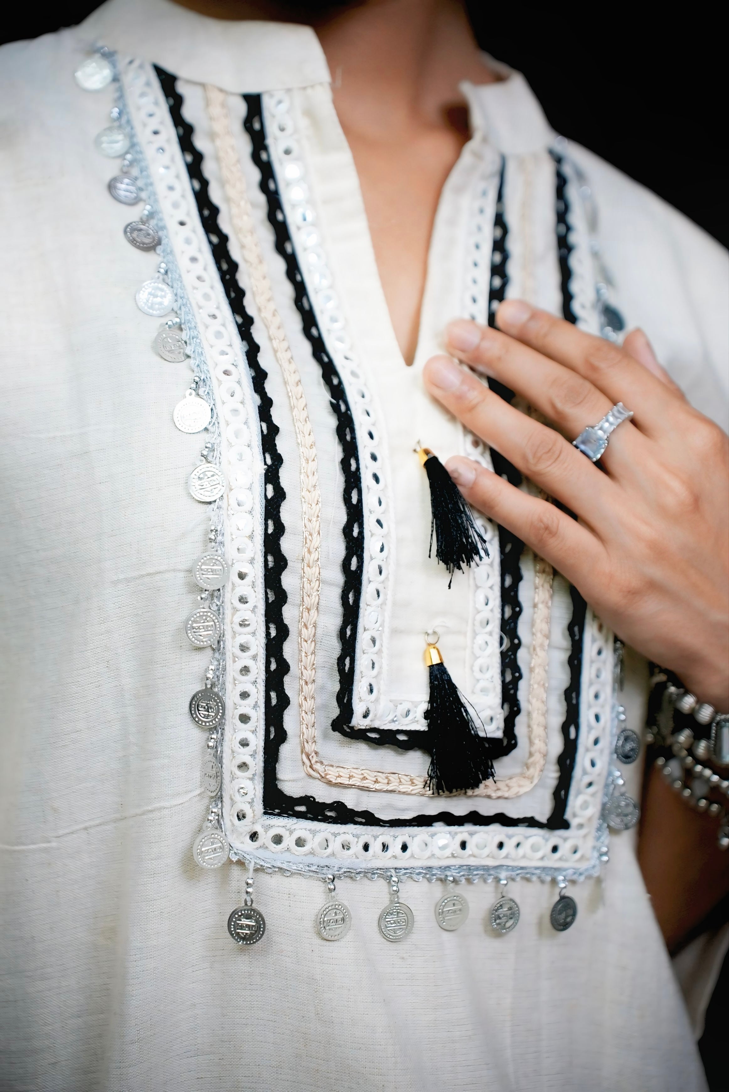 Off white pearl neck delicate top #290902
